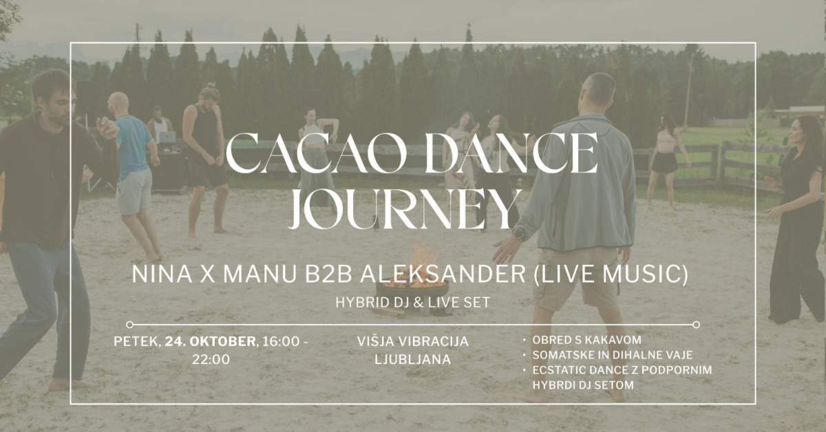 Cacao Dance Journey - v izjemnem času po mlaju v Tehtnici, ko se odnosi in ravnovesje postavljajo na novo, in na dan Lune v Strelcu, ki prinaša širino, lahkotnost in navdih za nove vizije.