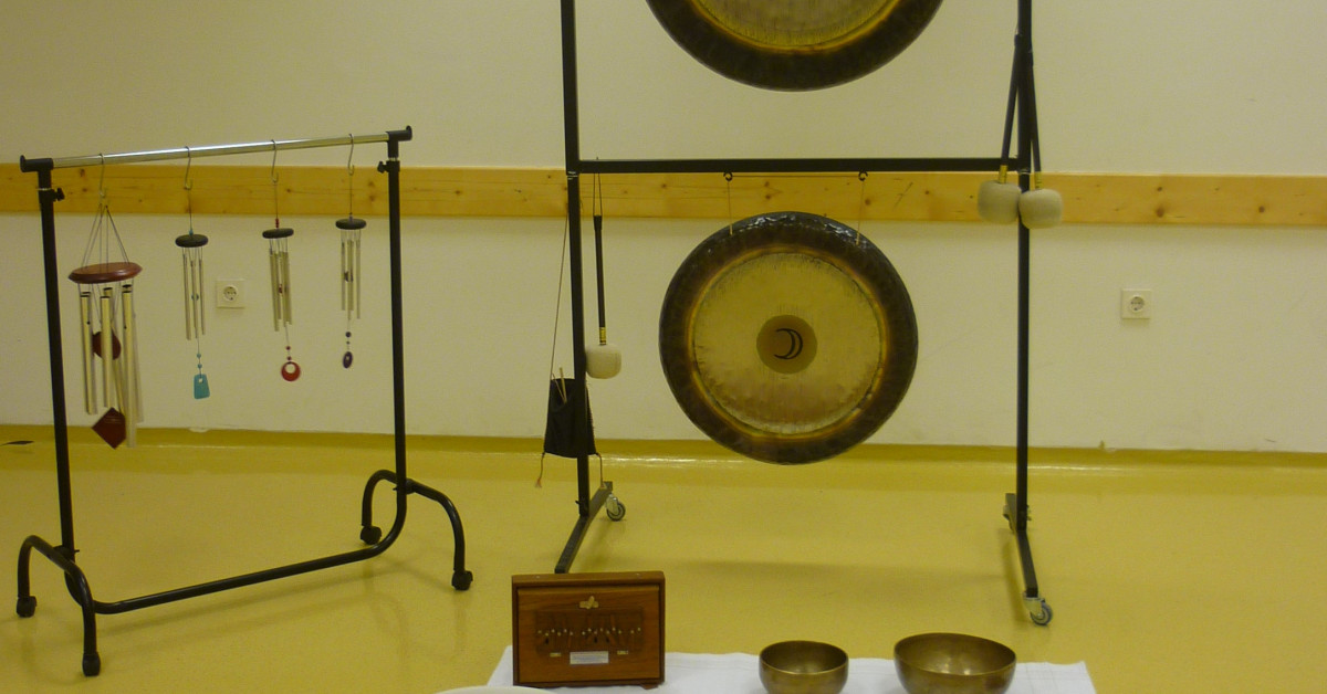 Učenje poteka s planetarnimi gongi, nepalskimi posodami, uglašenimi zvončki in kristalnimi posodami.