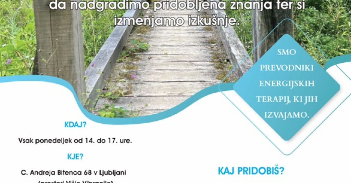 Smo skupina terapevtov, ki dela z energijo. Znanja in izkušnje pridobivamo zlasti na področju izboljševanja in ohranjanja človekovega zdravja. V skupino smo se povezali s ciljem, da nadgradimo pridobljena znanja ter si izmenjamo izkušnje.