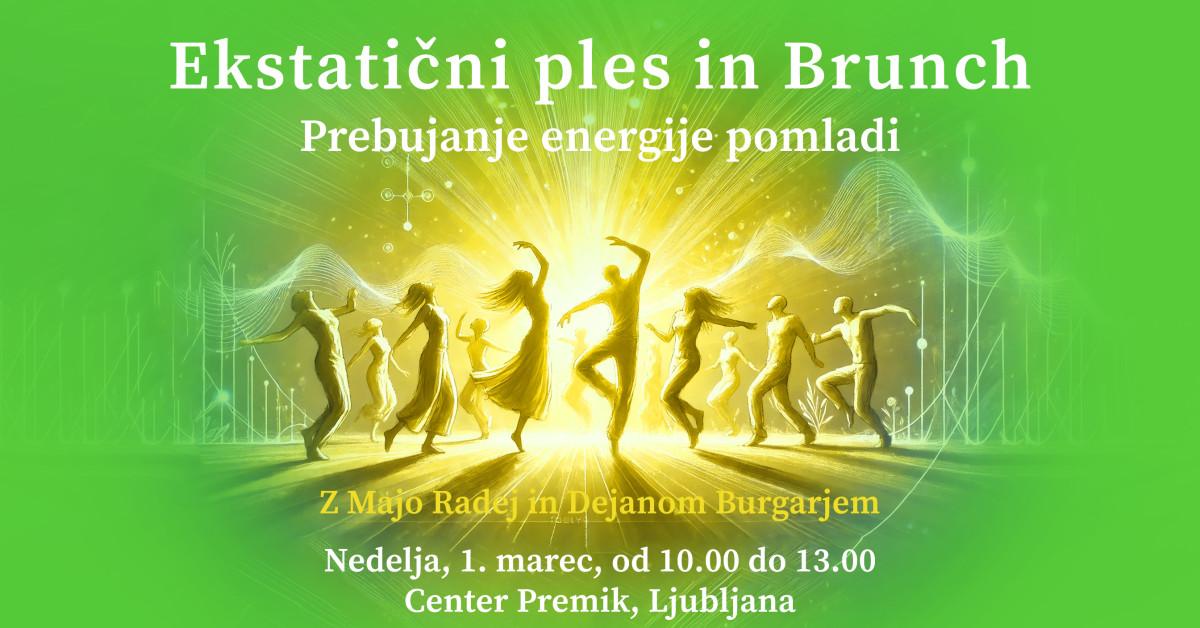 Zato sva Maja in Dejan pripravila ekstatični ples, prebujanje pomladi v meni, da se na noter nastavimo v smeri naših želja. Potovanje preko sproščanja, somatskih vaj, igrivih vaj za povezovanje in svobodnega plesa je čudovit recept za življenje polno užitka. Po plesu pa pripravljava še hranilno pojedino.