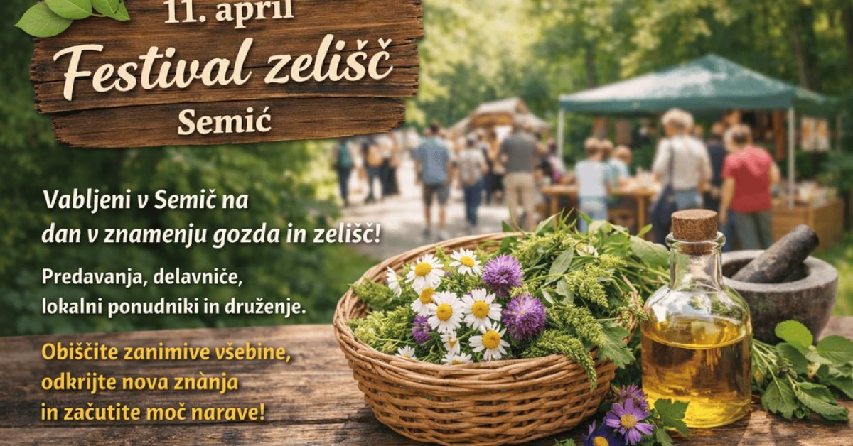 prisrčno vabljeni na Festival zelišč, ki bo v soboto, 11. aprila 2026, v Semiču, na Glavnem trgu, v Kulturnem centru in parku, med 10.00 in 18.00. Letošnji festival bo potekal v znamenju gozda in bo posvečen bogastvu narave s poudarkom na gozdu, zdravilnim rastlinam, tradicionalnemu znanju ter sodobnim pogledom na zdrav način življenja.