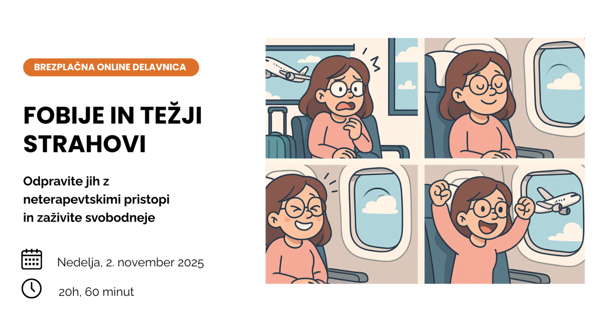 Na brezplačni online delavnici Fobije in težji strahovi vam bomo predstavili, kako jih lahko odpravite na neterapevtski način. Odkrili boste, kako: