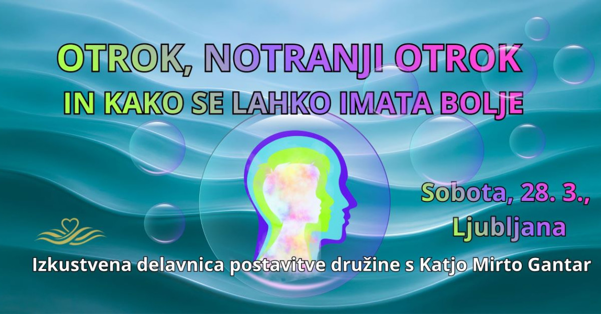 V soboto, 28. 3., med 10. in predvidoma 14. uro (oziroma dlje, če bo potrebno) vabljeni eksperimentalno izkustveno delavnico postavitve družine z naslovom Otrok, notranji otrok in kako se lahko imata bolje.