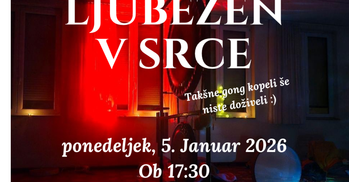 Vabljeni na novoletno gong kopel v ponedeljek, 5. januarja ob 17:30 v Hotelu Bau v Mariboru. Začenjamo leto števila 1 – leto novih začetkov, odločitev, poguma in jasne smeri, ko je še posebej pomembno, kako zavestno stopimo naprej. Gong kopel nudi globoko sprostitev, umirja živčni sistem, razbremenjuje čustveno napetost ter pomaga pri postavljanju notranje stabilnosti in namere za novo leto. Zvok prodira globoko v telo, usklajuje energijo in odpira prostor za več miru, osredotočenosti in notranje moči. Zvočno kopel vodi Roman Gostiša, izkušen gong mojster. Prispevek znaša 20 €, prijave na meditacija.zame@gmail.com ali SMS 040/337-369.