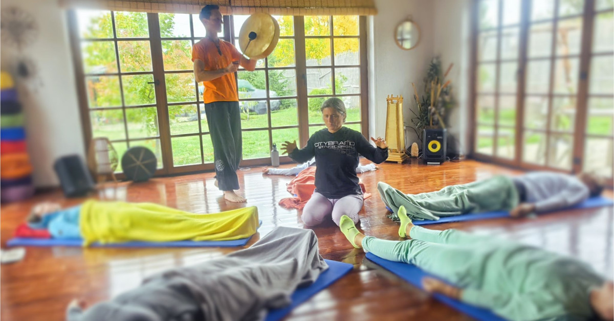 Sledi osrednji del delavnice – šamanski rebirthing. Gre za voden proces povezanega, zavestnega dihanja, ki nas popelje v globoka stanja razširjenega zavedanja. V tem stanju lahko dostopamo do potlačenih čustev, notranjih spominov, vizij ter osvobajamo vse tisto, kar nam več ne služi.