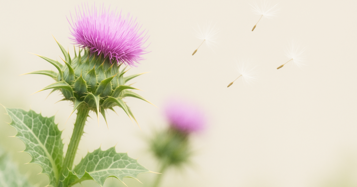 Novembra se bomo v okviru mesečnih spletnih srečanj Herbalist zeliščarskega popotovanja posvetili pegastemu badlju (Silybum marianum) – zaveznika jeter in prebavil, ki s svojimi bodičastimi listi varuje in s semeni podpira nežne procese regeneracije. V tradiciji simbolizira zaščito, čistost in moč obnovitve.