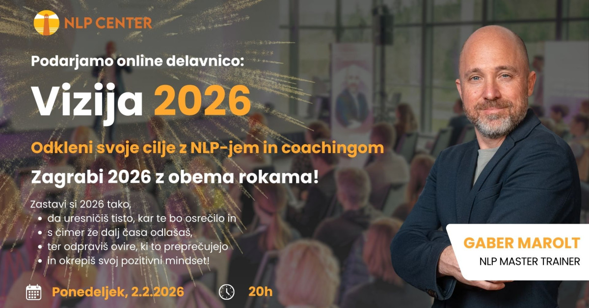 Vabimo te na brezplačno delavnico Vizija 2026, kjer boš s pomočjo NLP-ja in coachinga naredil/a jasen in konkreten korak od želja k dejanjem.