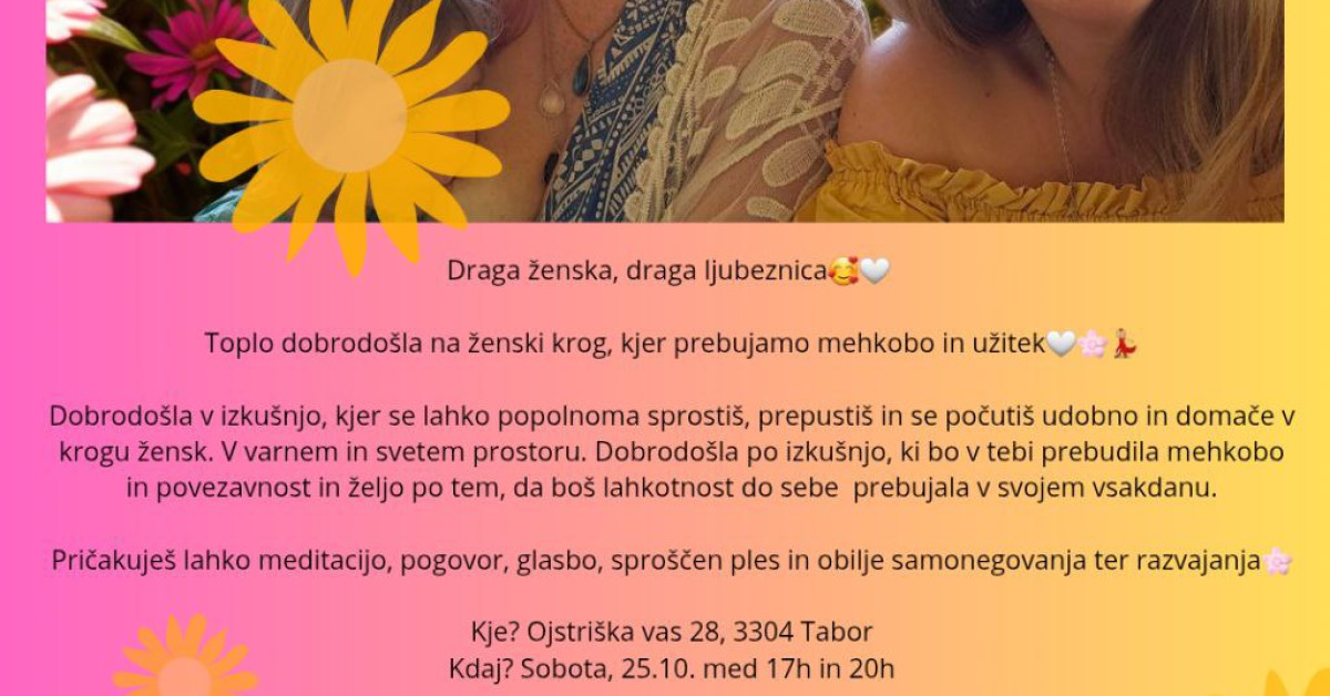 Toplo dobrodošla na ženski krog, kjer prebujamo mehkobo in užitek.